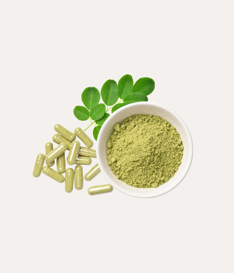 Optimisez votre bien-être avec les gélules de poudre naturelle de Moringa Oleifera, une plante aux multiples bienfaits santé issue de l'agriculture régénératrice de la ferme agroécologique de Beer Shéba au Sénégal. Superaliment, source de vertus nutritionnelles, le moringa renforce les défenses immunitaires de l’organisme avec ses propriétés antioxydantes, anti-inflammatoires, et antidiabétiques, et améliore les capacités cognitives en prime. La poudre de moringa est enveloppée dans une capsule 100% végétale, produite à base d’algues marines. Elle ne contient ni gélatine, ni colorant, ni conservateur, ni édulcorant, ni arôme, ni plastifiant tels que le glycérol ou le sorbitol. Elle est donc : 100% naturelle.