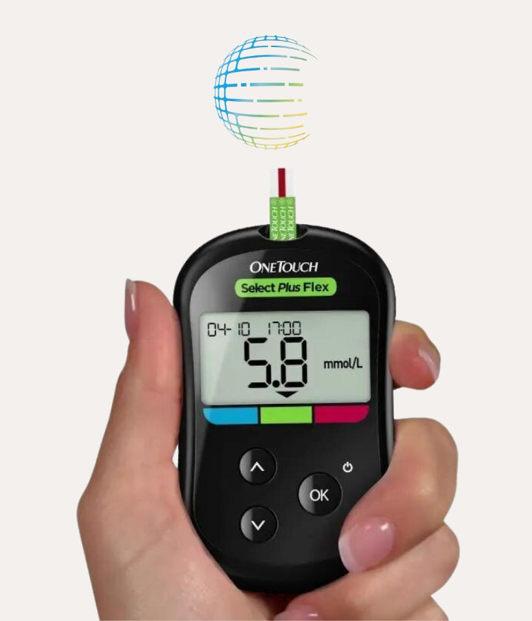 Le système de surveillance de la glycémie OneTouch Select Plus Flex™ est conçu pour la mesure quantitative du glucose (sucre) dans les échantillons de sang total capillaire frais prélevés sur le bout du doigt. Il est conçu pour être utilisé par un seul patient et ne doit pas être partagé. Le système de surveillance de la glycémie OneTouch Select Plus Flex™ est destiné à être utilisé pour l’auto-test, à domicile par les personnes diabétiques, et en milieu hospitalier par les professionnels de santé, afin de faciliter la surveillance de l’efficacité du suivi du diabète.